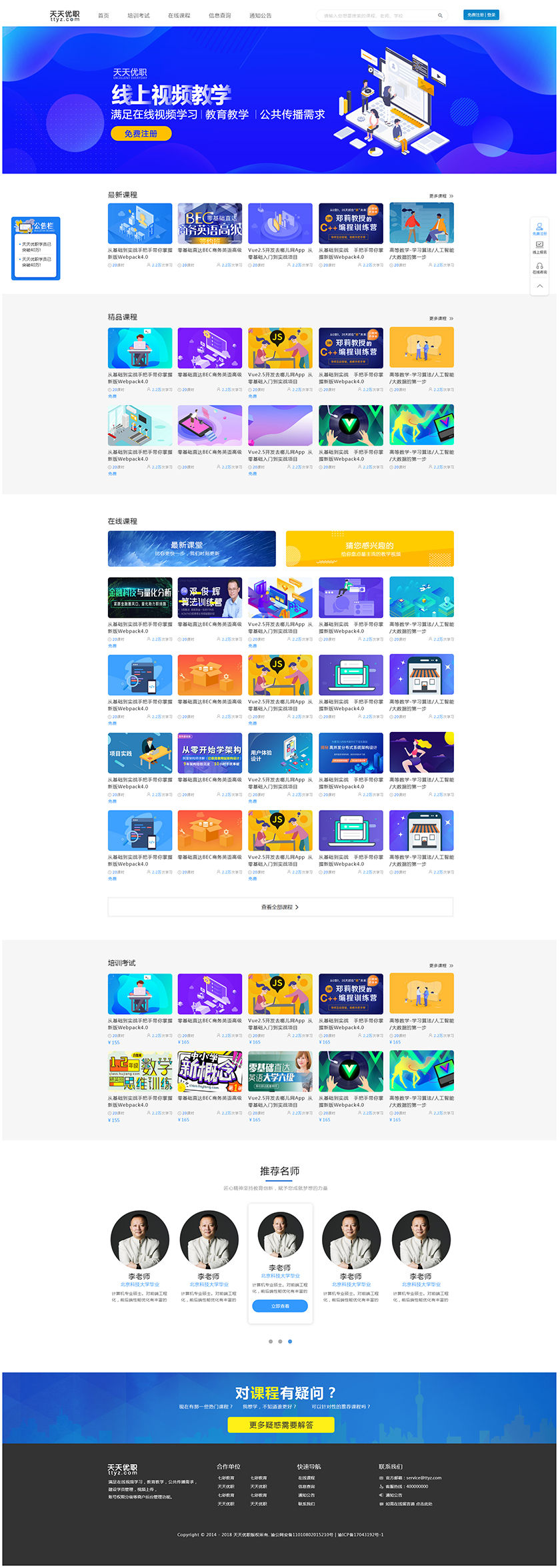 Project Description 满足在线视频学习,教育教学,公共传播需求, 建设学员管理,视频上传, 账号权限分级等商户后台管理功能 Official website address 巫溪http://tiantianyouzhi.com/ I want to share